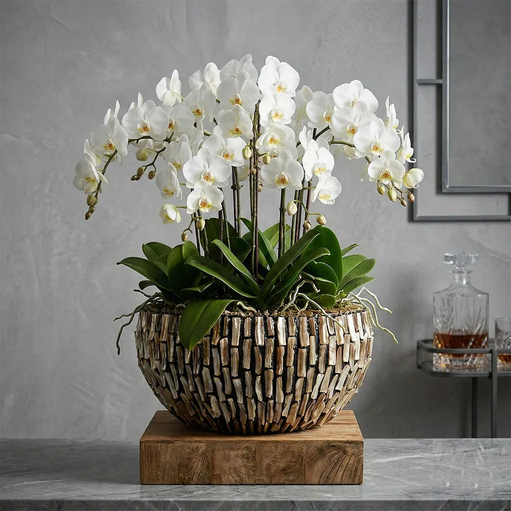 Vyrobená je z kvalitného fiberglassu, ktorý zabezpečuje výborný pomer medzi ľahkosťou a pevnosťou. Váza je stabilná, odolná voči vlhkosti a nenáročná na údržbu, takže je vhodná do interiéru, ako aj na kryté terasy či do hotelových priestorov. Tento materiál zaručuje dlhú životnosť a zachovanie bezchybného vzhľadu aj po rokoch používania.