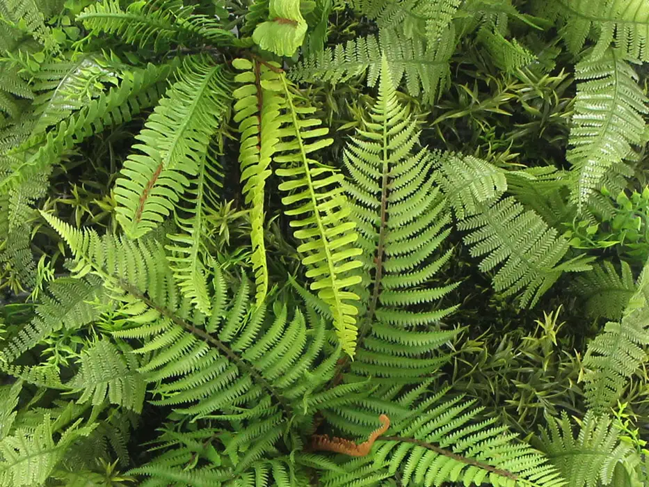 Zelená stena Madeira 50 cm je dekoratívny panel, ktorý prináša čerstvosť prírody do každého priestoru. S jeho hustým a rôznorodým rastlinným vzorom, ktorý zahŕňa realistické paprade a ďalšie zelené prvky, vytvára ohromujúci vizuálny efekt.