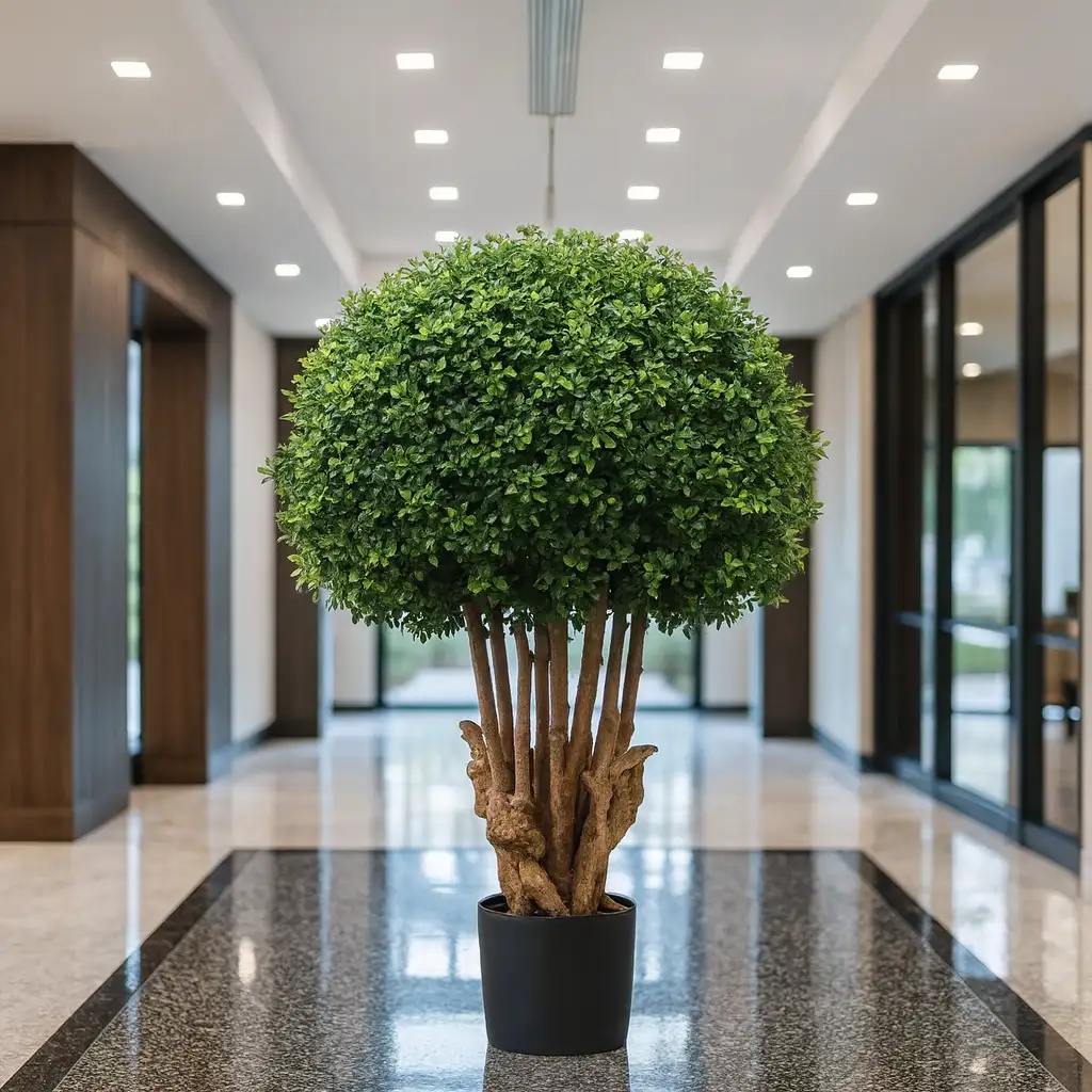🌿 Prírodný vzhľad – Husto tvarovaná koruna s autentickou textúrou listov a skutočným dreveným kmeňom zabezpečuje elegantný a realistický efekt.