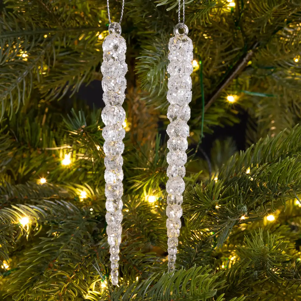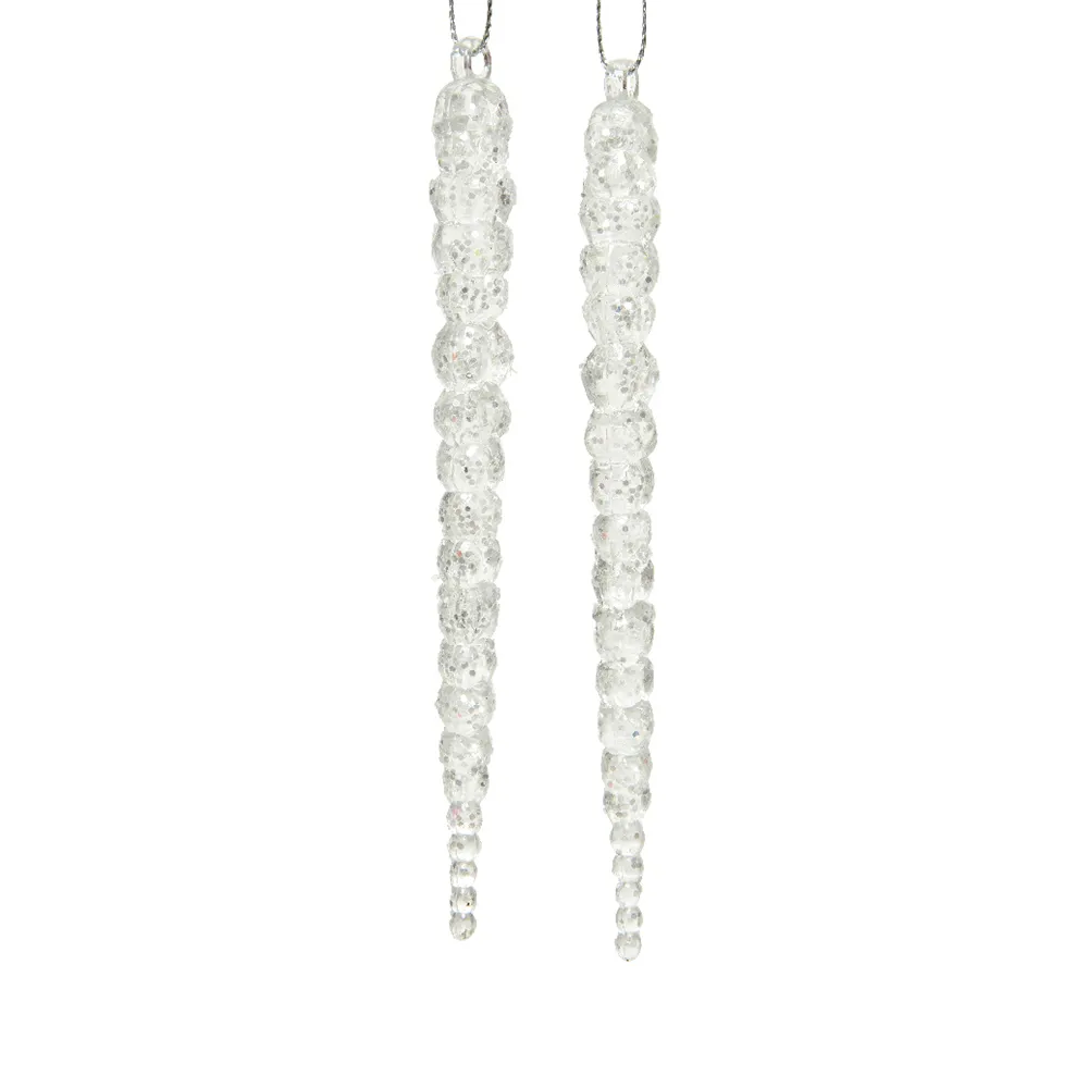 Táto dekorácia v podobe ľadovej sviečky s trblietkami v bielej farbe dodá vášmu interiéru zimný a elegantný vzhľad. Balenie obsahuje 2 kusy.
