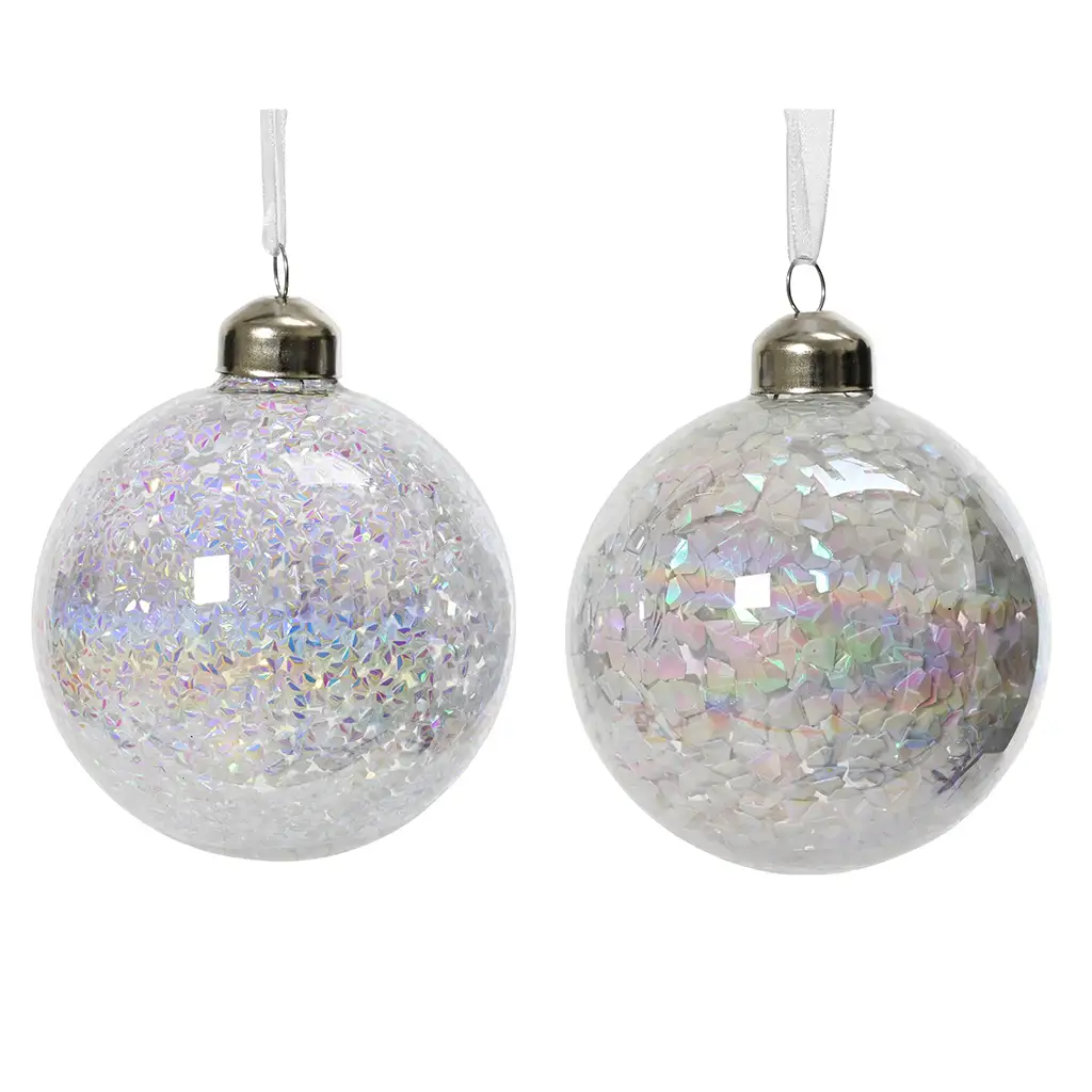 Táto novoročná ozdoba s priemerom 8 cm v zimnej bielej farbe dodá vašim novoročným dekoráciám čistý a svieži vzhľad. Vhodná na zavesenie na stromček.