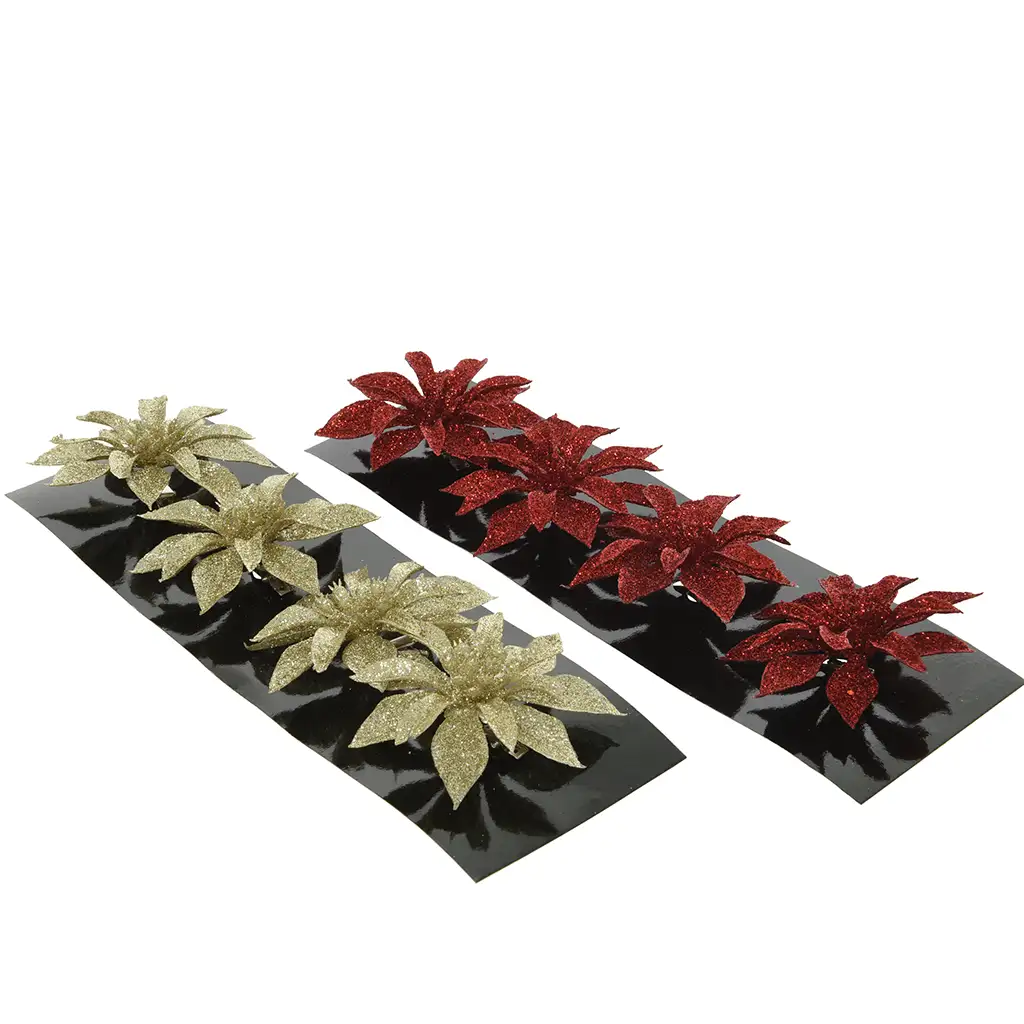 Ozdoba Vianočná hviezda 8 cm červeno/zelenej farby je vyrobená z polyesteru v imitácii pravej vianočnej hviezdy. Pokrytá je žiarivým leskom. Vianočná hviezda je pripevnená na klips na jednoduché pripevnenie na vianočný stromček, adventný veniec alebo girlandu. Vianočná hviezda je dostupná v niekoľkých farbách, dizajnoch a rozmeroch.